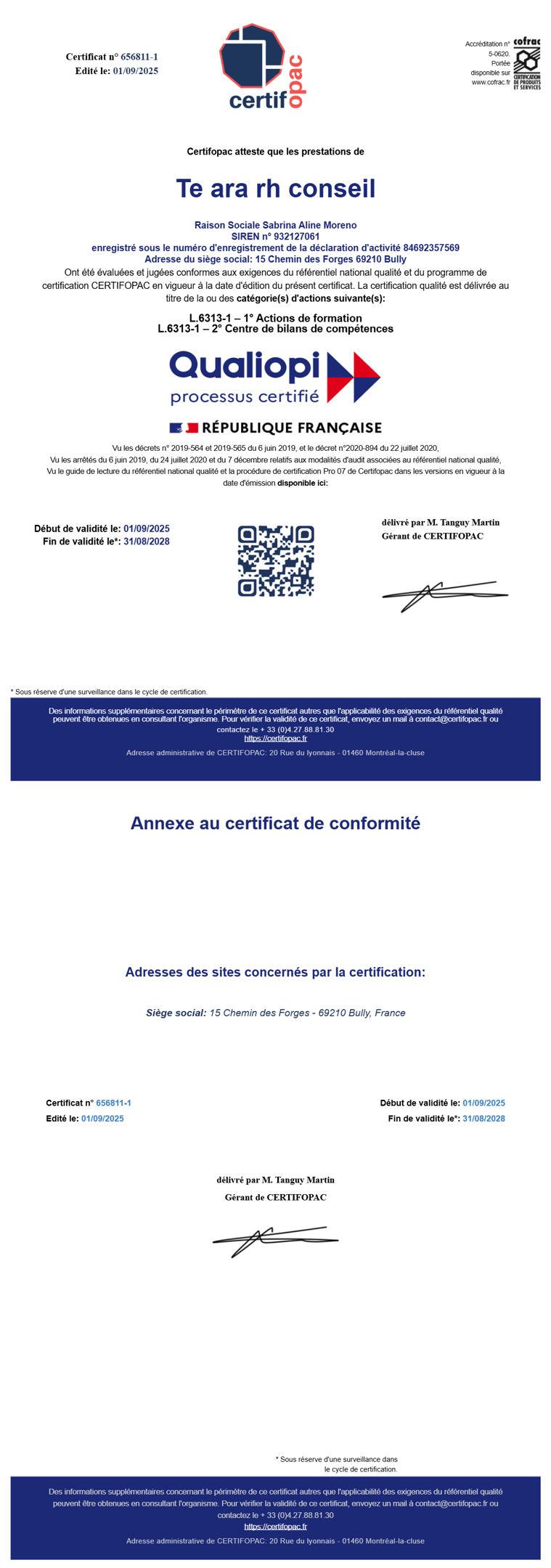 Ma démarche qualité au titre des actions de formation et du bilan de compétences est certifiée Qualiopi par Certifopac- Ma prestation de Bilan de compétences est éligible au CPF , et c'est un point d'honneur pour moi de donner accès à mes prestations au plus grand nombre.