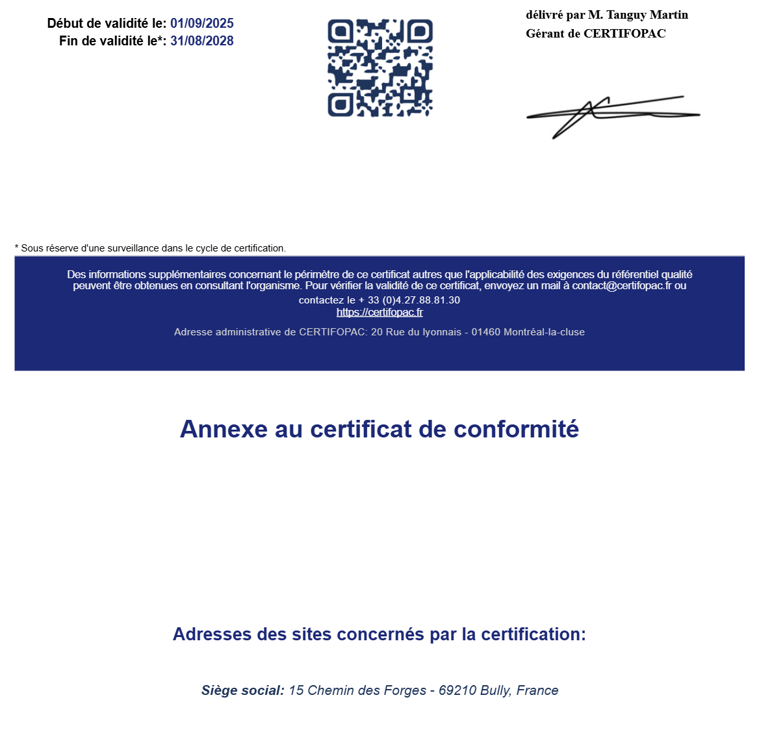La CERTIFICATION qualité est délivrée au titre des catégories d'actions suivantes : centre de Bilan de compétences et actions de formation
